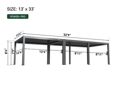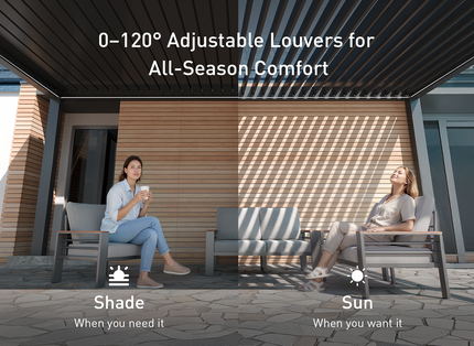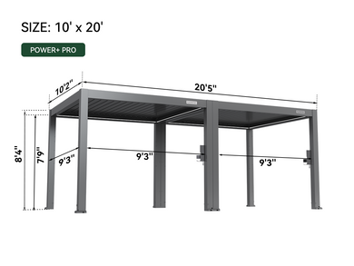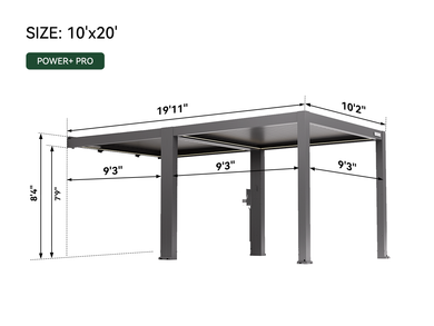 Crush workouts from sunrise to sunset in your 10' x 13' POWER+ PRO Pergola. With built-in power for your fitness gear, adjustable louvers for fresh-air cardio, and UV-blocking shades or rain-resistant cover, this smart pergola bends to your routine—keeping you cool, dry, and energized no matter the weather.