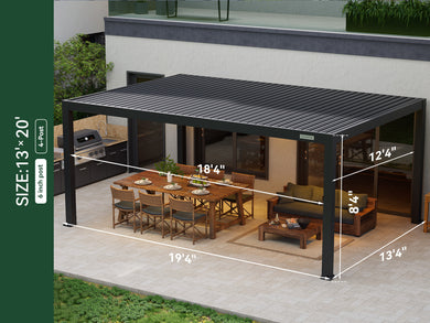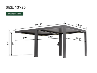 The 13' x 20' POWER+ PRO Pergola brings the perfect mix of dining, drinks, and relaxation to your yard. With louvered side walls, motorized shades, and sliding glass doors, this lounge is ready for casual brunches, sunset cocktails, or just unwinding with friends.
