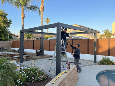 - Full assembly and installation of the pergola structure